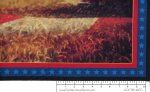 The border is a gold pinstripe, red border, and tonal blue stars on a Navy border. Total border width is 1-1/2 inches wide.