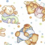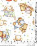 Tossed Baby Animals 27901-ELullaby Collection by QT Fabrics100% cotton, 43/44in wideBaby animals in their PJs are approximately 2-1/2 - 3 inches. Perfect for a new baby quilt. Sew sweet!